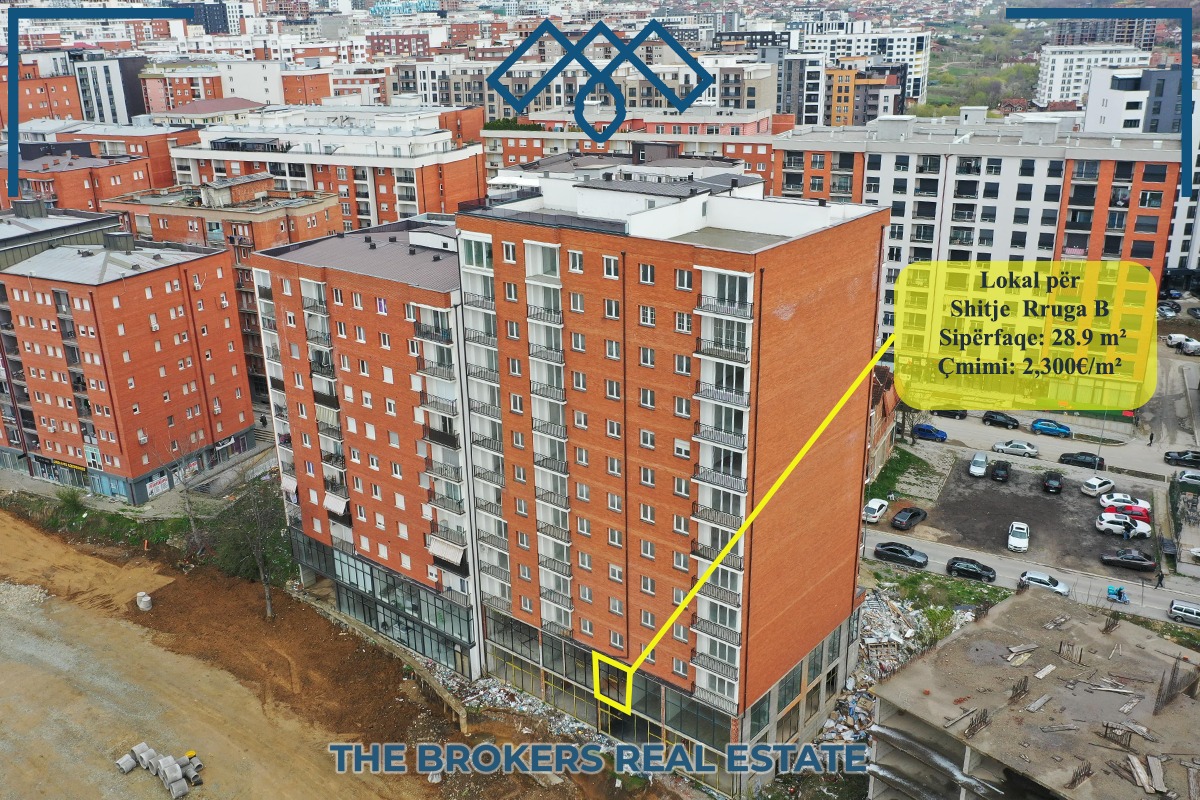 Ofrohet për shitje lokal me sipërfaqe prej 28.9m², i pozicionuar në vijën e parë në Rrugën B, me pamje direkte nga pjesa e re që lidhet me rrethin e Vives dhe Rrugën A.