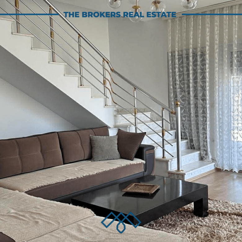 Përbëhet nga salloni me kuzhinë, 3 dhoma gjumi, banjo, 2 terasa dhe podrum prej 60m².